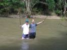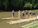 | This was the last day in jungle. Although we took two bamboo floats we did not need to walk any more. Every person had a role to keep the float on the water and to prevent a collision with rocks. During rafting down the river we passed a group with a crashed float. After travelling back to Chiang Mai by two Sang Tao we went out to have dinner at the Riverside Restaurant. There you get excellent food and various drinks at a good value. To complete the evening we went to a Thai-Boxing Arena where we saw Thai Boxing for the very first time. | ![]() ![]() ![]() |