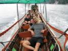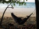 In the morning we took off for another island. On the way we stopped at Emerald Cave with a mind-blowing hidden beach on the other side. After this fabulus adventure we returned to out boat. 1h later we arrived at our destination: Ko Rok Island. On this beautiful island, which is a national park, we spent two days just relaxing. In the evening we had barbecue. Because it´s only allowed to stay overnight with a local guide and sleeping in a tent, we were the only ones apart from a few forest wardens. Ko Rok simply was gorgeous. We went several times to snorkel and made a trip around the island by boat. After the first night in the tent where I could not sleep very well, I decided to try the hangmate in the folloeing night. I highly recommend to everybody to try this, it´s far more comfortable. In the morning we went to see a few of 20 lizards living there. Some of them were at least 2 meters long; on first sight like a crocodile. Apart from comfort it´s amazing waking up for sunrise in a hangmate on the beach. Then we sadly had to return to Ko Mook Island. |