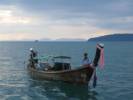 | In the morning we were a bit in a hurry. We had to move and planned to go diving near Phi-Phi islands. The boat trip (aprx. 2h) was very nice, the dive spot okay but not superb. In the evening we went out in the most touristic site we had on our itinerary. The prices were double the amount anywhere else. Apart from that one hotel after another, Razzle-dazzle, nothing for us. We were glad our stay lasted only one day. | ![]() ![]() ![]() |